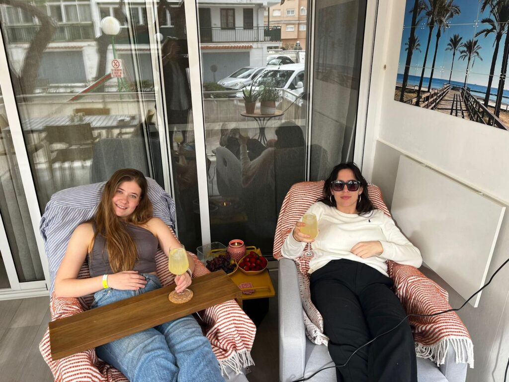 Tot rust komen en een klasieke “siesta” doen hoort uiteraard tot de dagelijkse bezigheden in Benicasim. De Spaanse cultuur is zowel in het eten als in de rust terug te vinden. De twee electrische ligstoelen zijn daarvoor ideaal. Ook om te lezen, een koffie te nuttigen of een biertje, limoncello of glas wijn. De stoelen kennen één disclaimer: ze zijn verslavend. Meerdere gasten hebben evenveel heimwee naar de stoelen als naar Benicasim en Casa de Raquel.